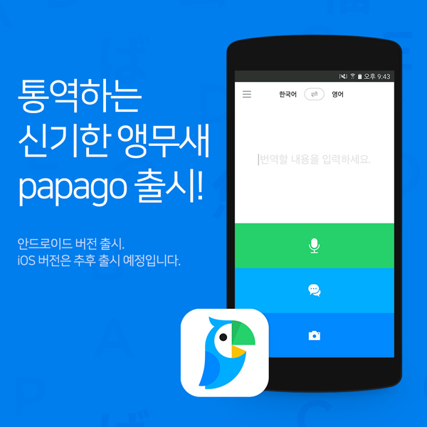 네이버는 인공지능 기술을 기반으로 한 자동통역 앱인 ‘파파고(papago)’를 출시했다.