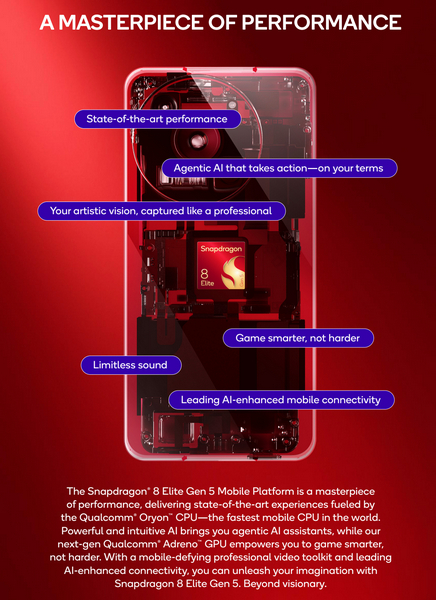신형 칩은 TSMC 3nm 공정과 3세대 오리온(Oryon) CPU를 기반으로, 최대 4.6GHz로 구동되는 프라임 코어 2개와 최대 3.62GHz의 퍼포먼스 코어 6개로 구성됐다. 퀄컴은 "전작 대비 CPU 성능은 20% 향상됐으며 전력 효율은 35% 개선됐다”고 밝혔다.