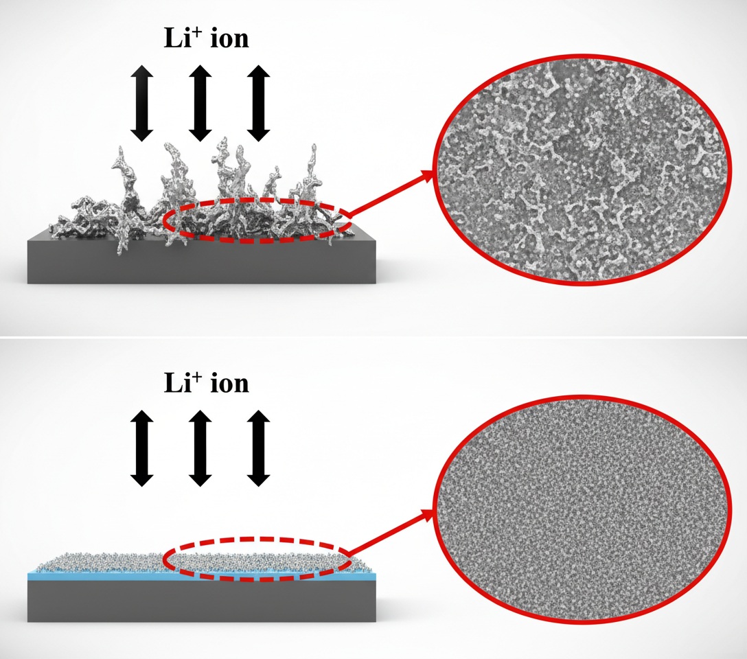 리튬 메탈은 이론적으로 가장 높은 에너지 밀도를 제공하는 최종 음극재로 꼽히지만, 충•방전과정 에서 발생하는 덴드라이트로 인한 내부 단락과 화재 위험이 상용화의 가장 큰 걸림돌로 지적돼 왔다.