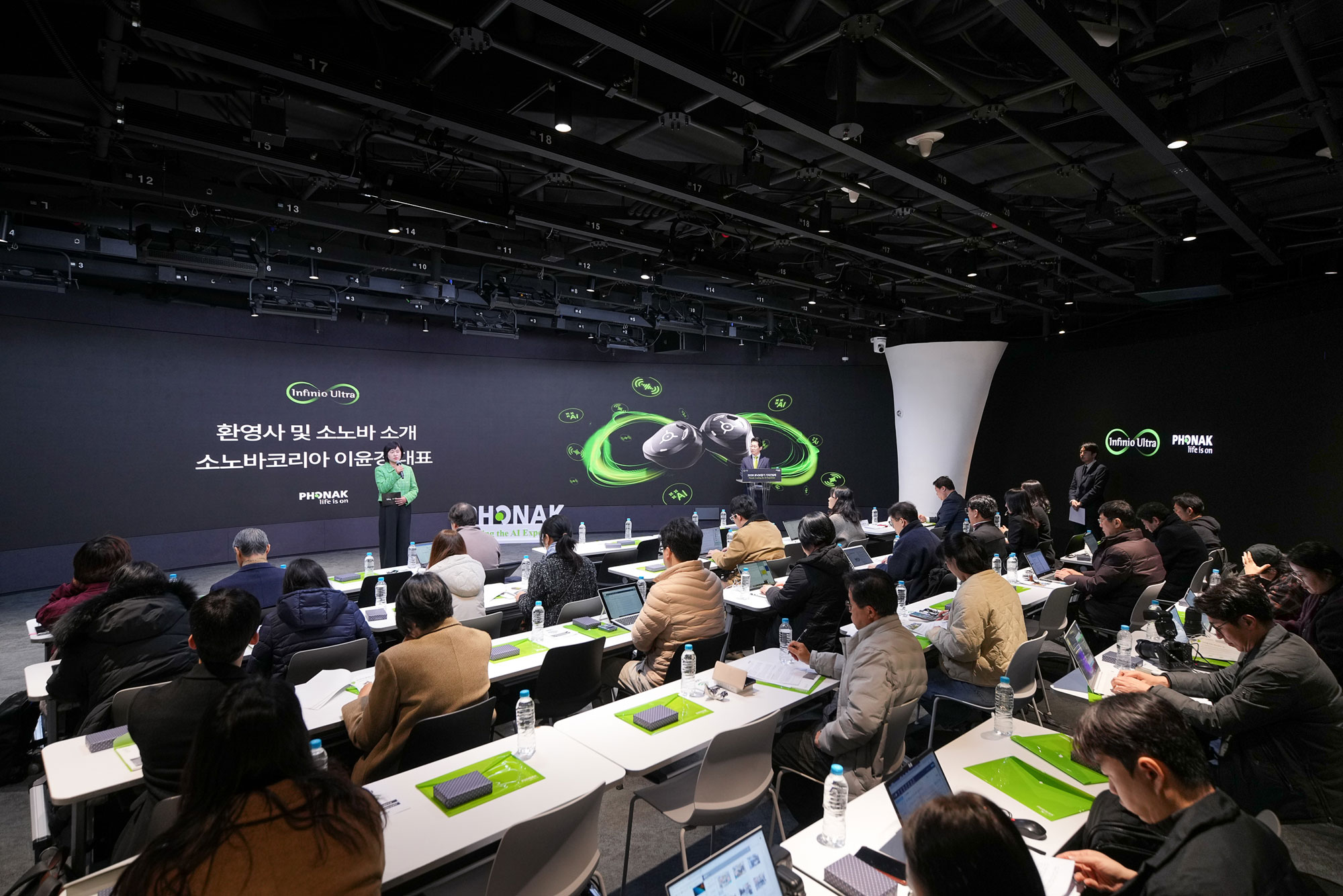 스위스 프리미엄 청각 브랜드 포낙(Phonak)이 2월 27일 서울 동대문디자인플라자(DDP) 디자인랩 2층 서울온 화상 스튜디오에서 ‘Phonak: Leading the AI Experience’를 주제로 기자간담회를 개최했다.