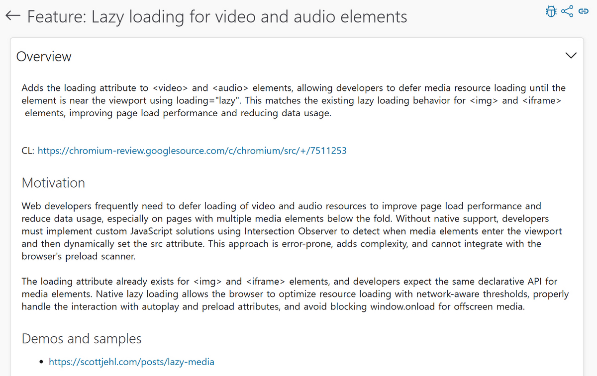 이번 업데이트를 통해 용량이 큰 미디어 파일까지 로딩 시점을 제어할 수 있게 되면서, 불필요한 데이터 사용을 줄이고 페이지 초기 로딩 속도를 크게 개선할 수 있을 것으로 기대된다.
