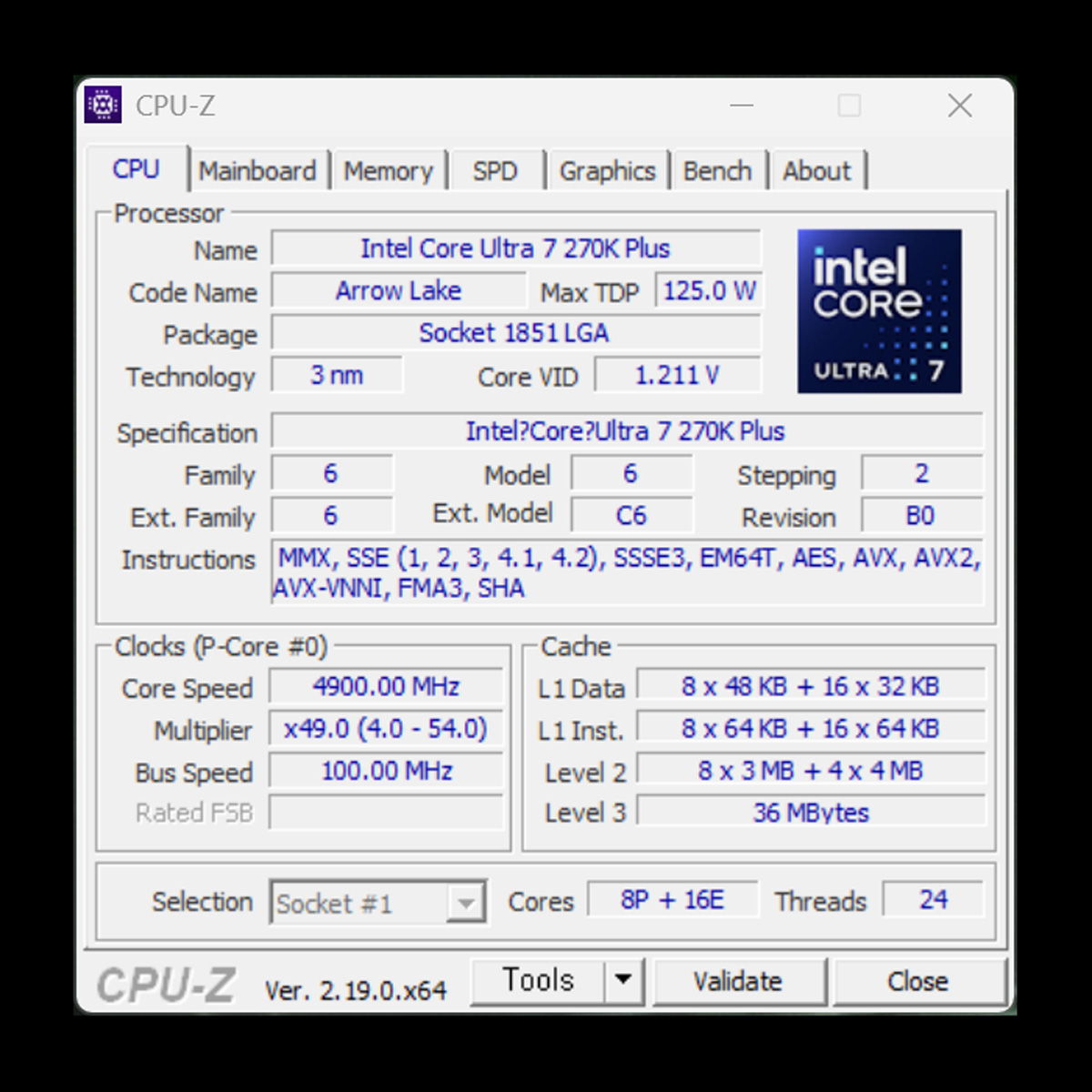 인텔 코어 울트라 7 270K Plus는 구성만 놓고 보면 코어 울트라 9 285K와 큰 차이가 없는 모델이다. 코어 수와 캐시 용량이 동일하게 구성된 상태에서, 부스트 클럭만 약 100~200MHz 낮게 설정된 것이 사실상 유일한 차이다.