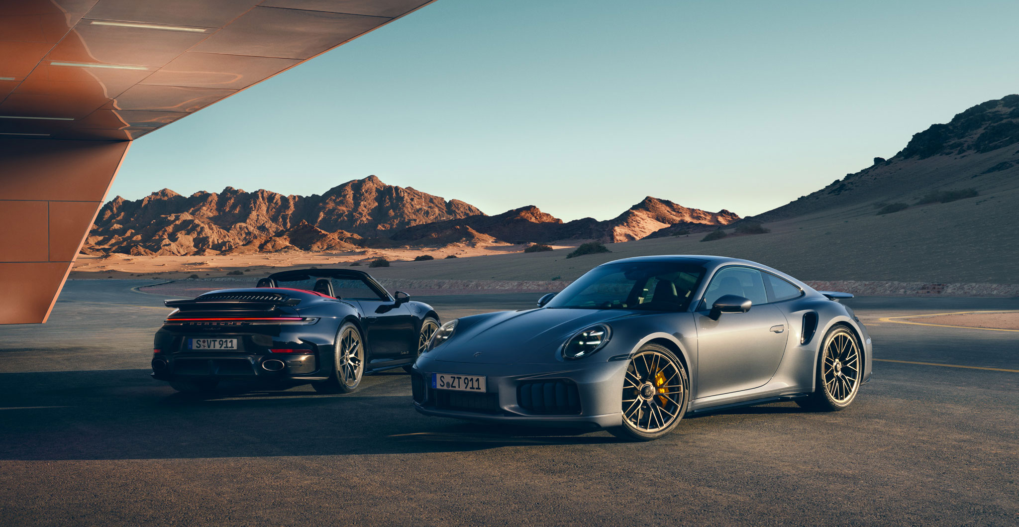 신형 911 터보 S는 포르쉐의 크로스-시리즈 터보 디자인 전략을 반영한다. 터보 모델 전용 컬러인 터보나이트 (Turbonite)가 크레스트, 차량 후면 “Turbo S” 레터링, 리어 윙 슬랫 등에 적용된다. 카레라 모델 대비 넓어진 차체와 트랙, 리어 사이드 섹션의 공기 흡입구, 티타늄 배기 시스템은 최상위 모델의 차별성을 더욱 강조한다.