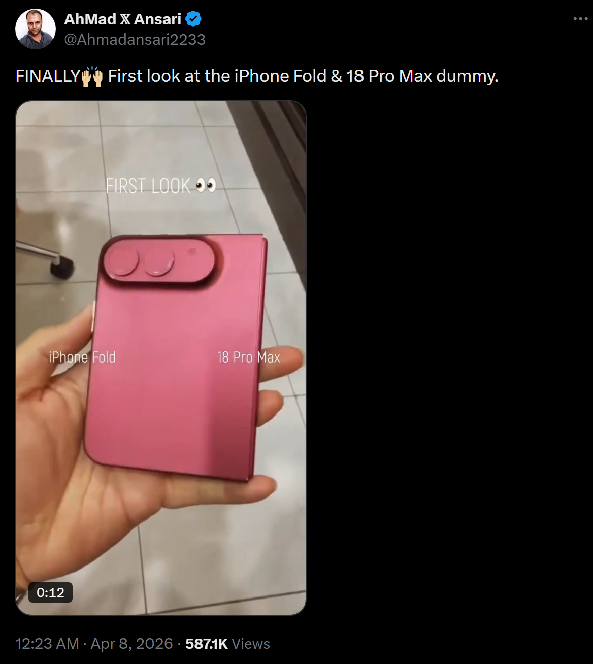 X(구 트위터) 사용자 AhMad Ansari가 공유한 영상에서는 아이폰 폴드와 ‘아이폰 18 프로 맥스’의 실물 크기 더미가 함께 등장한다.